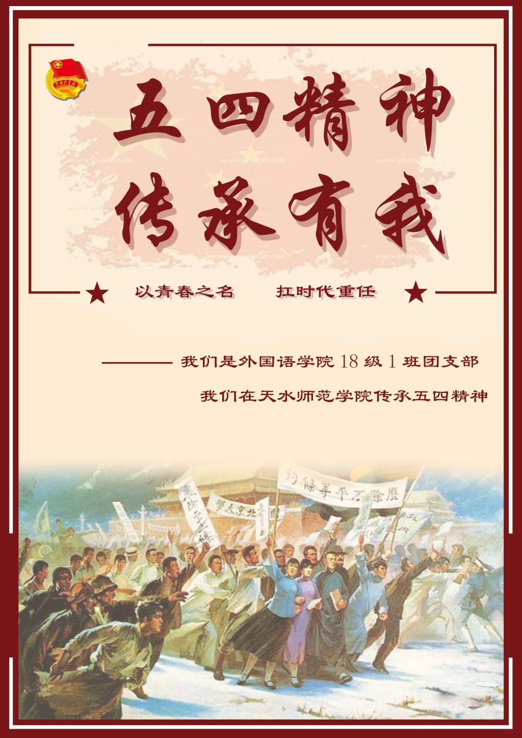 各团支部积极开展“五四精神 传承有我”的学习活动,鼓励共青团员积极参与,通过本支部QQ群沟通交流,以制作海报、短视频、漫画、手抄报等形式,围绕纪念五四运动,青春正能量、青春感悟等积极向上内容,展示祖国建设伟大成就和当代青年风貌。