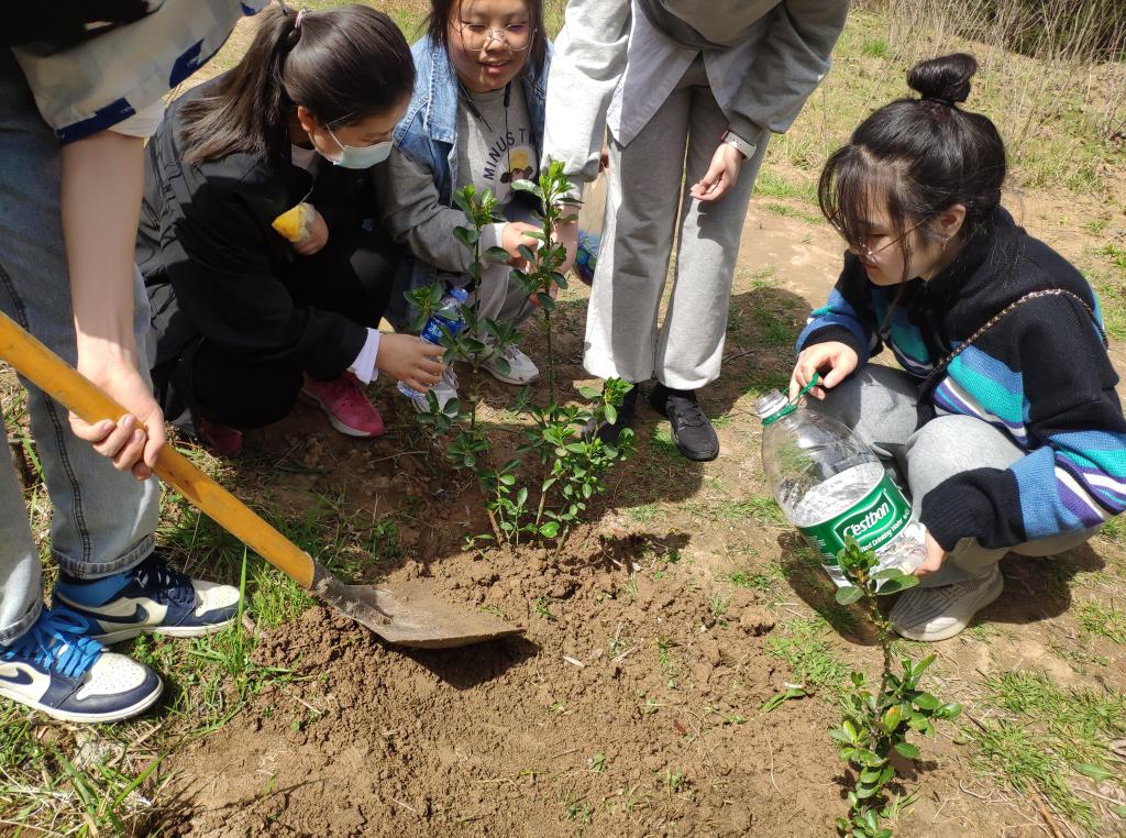 19级3班团支部购买树苗,带领团员们开展植树护绿主题团日活动,刨坑、翻土、放树、填土、夯实、浇水,大家同心协力,挥舞着铁锹,挥洒着汗水,细心种下一棵棵小树苗,为山坡增添了一抹亮丽的新绿,让团员青年们牢固树立了生态文明的意识和观念,践行了“绿水青山就是金山银山”的发展理念,充分展现了团员青年们良好的精神风貌,增强了生态意识、绿化意识、环保意识。
