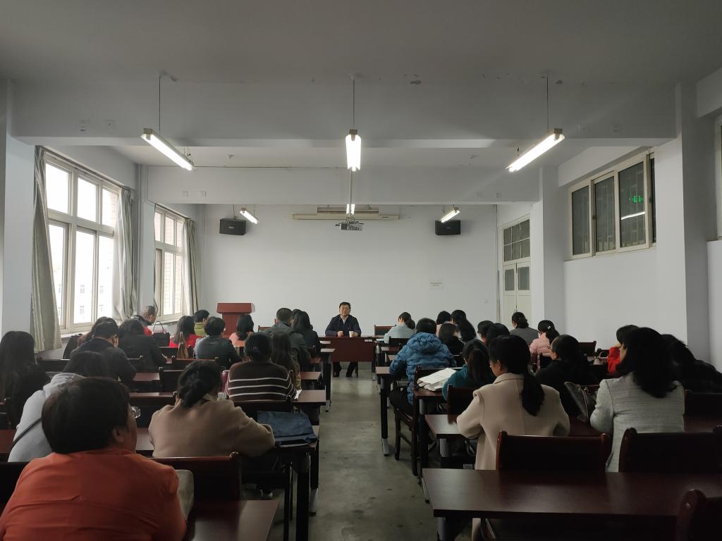 10月15日下午,党委常委、副校长汪咏国到Beat365官方网站作辅导报告。Beat365官方网站全体领导班子成员和教职工参加报告会。