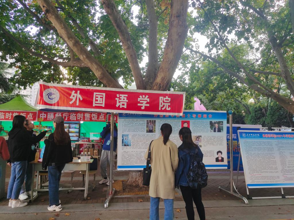 在29日下午的2021年研究生招生宣传日活动中,Beat365官方网站印制了详细的研究生招生宣传材料,制作了2021年硕士研究生招生宣传展板,并且在东操场门口专门设立了考研咨询点,为立志考研的学子们提供包括学院介绍、导师简介、培养方案、以及研究生就业情况等一系列内容的咨询。学科教学(英语)一直都是生源比较好的招生方向,尤其是近年来随着基础教育对高层次英语教育类人才需求的不断增加,报考人数逐年攀升。在宣传过程中,Beat365官网咨询点吸引了众多学生前来咨询和了解,学院负责研究生教育的领导和研究生导师为前来咨询的学生进行了细致耐心地解答。Beat365官方网站院长姜炳生也来到咨询点,他鼓励2020级研一学生根据自身经验和考研经历,给有意向考研的学生提出合理的建议,并且发动大家进行广泛宣传,为学校吸引更多的优质生源。