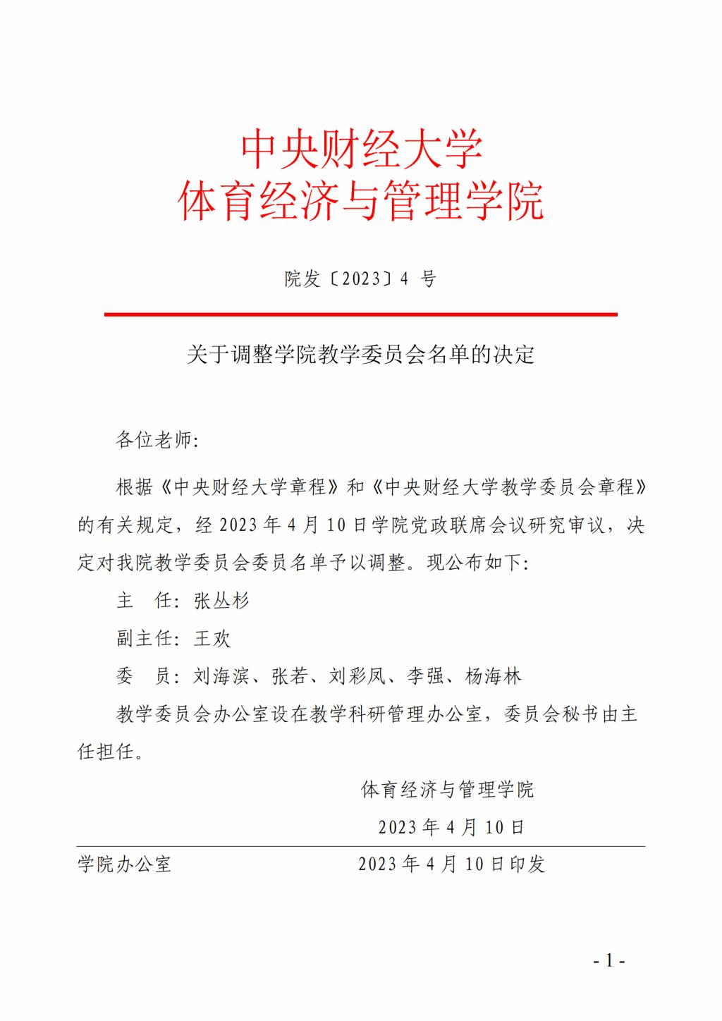 院发〔2023〕4号 关于调整学院教学委员会的决定