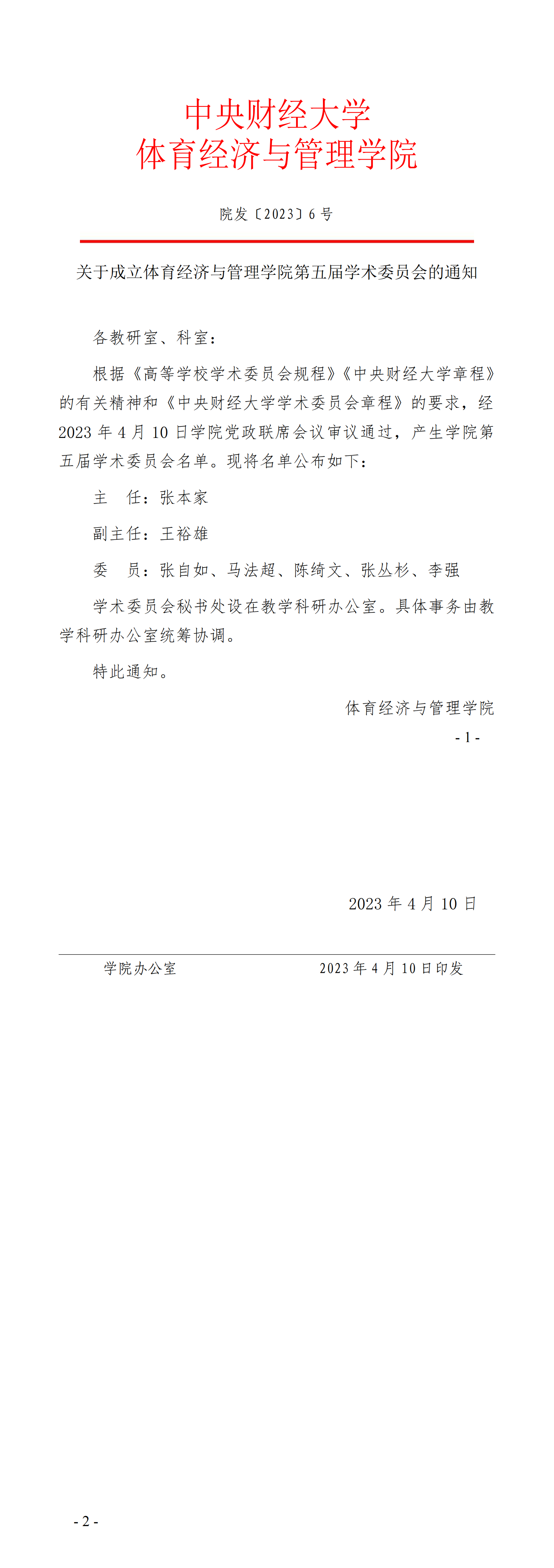 院发〔2023〕6号 关于成立新葡萄官网amg第五届学术委员会的通知