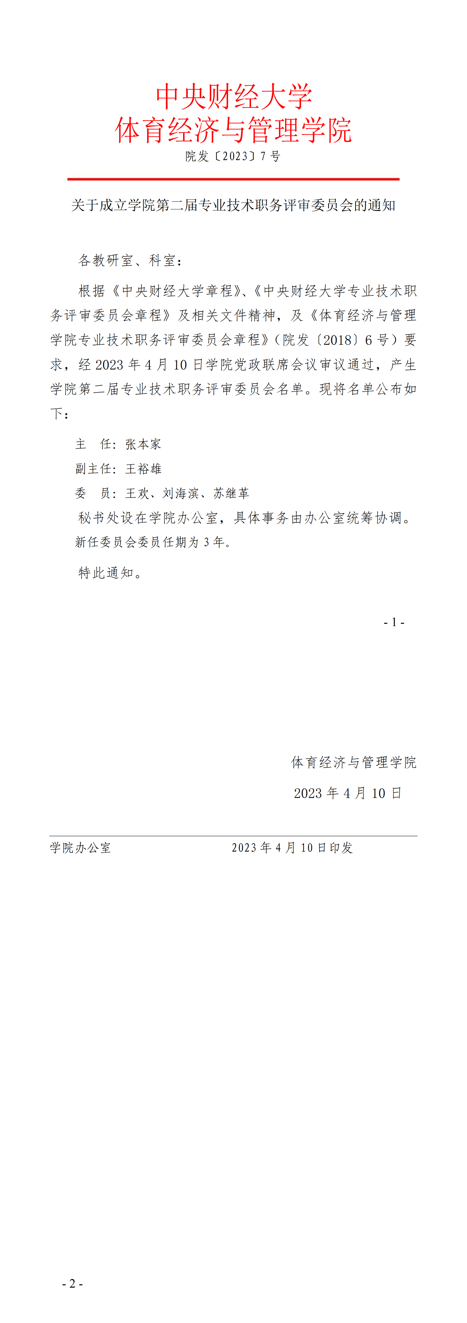 院发〔2023〕7号 关于成立第二届专业技术职务评审委员会的通知