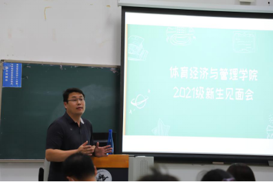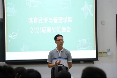 随后,体经学院副院长张丛杉老师着重讲述了本院的课程安排、学科介绍、教学内容等等。此外,张丛杉老师还给新生们提供了许多有用的学习建议,他期望每一位同学能够在未来积极主动地与老师进行交流,吸收有益经验。就课程安排问题来讲,他希望每一位同学都能够合理安排时间,有条不紊的完成学业任务,同时不断充实提升自己。