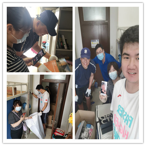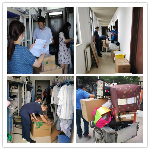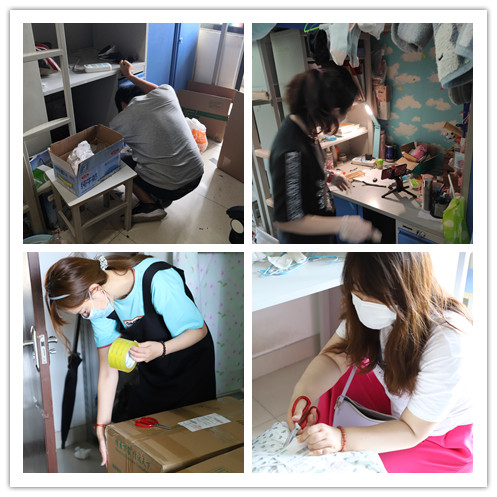 6月28日至7月1日,打包工作组在实践中摸索更加高效的工作方式,打包中时刻保持与毕业生的视频沟通,老师们“登高钻桌”全面覆盖宿舍的每个角落,仔细询问毕业生的每一件物品是否需要,耐心的介绍物品打包的限制,并在每天打包工作的间隙将一件件学生需要但又不在邮寄范围内的物品单独用快递寄送给毕业生。
