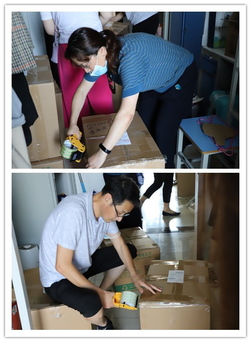 6月29日,校工会常务副主席贺小海老师带领工会的郁泉、刘晓勤、谭嗣钰和严敏娜共5位老师加入到整个打包工作团队,令整个打包工作的效率更上一层楼。