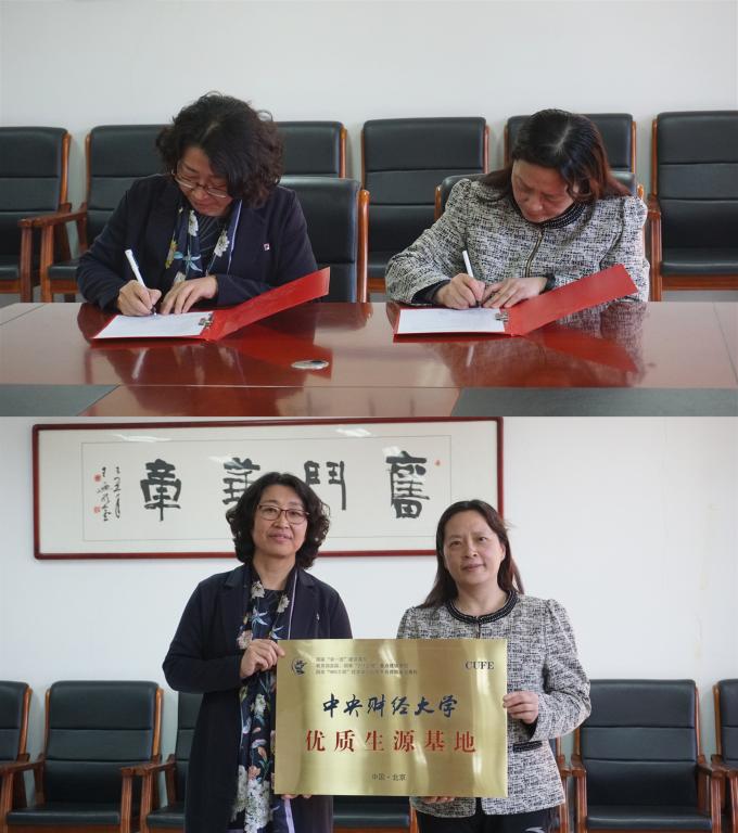 最后,林琼书记与呼市二中王文梅校长签署了合作协议,并授予该校中央财经大学“优质生源基地”的牌匾。