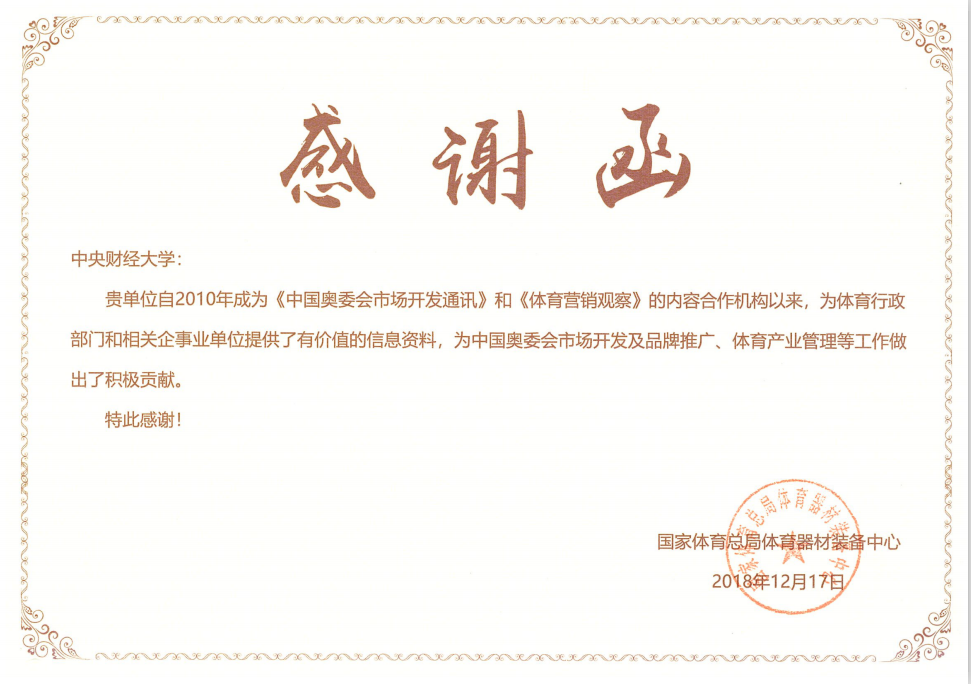 《中国奥委会市场开发通讯》和《体育营销观察》是由国家体育总局体育器材装备中心和中国奥委会市场开发部主办的内部刊物。2010年起,新葡萄官网“体育经济研究中心“”开始负责这两本刊物的信息提供工作。主要参与专家有马法超、张若、刘彩凤、李永红,以及新葡萄官网其他教师及学生。