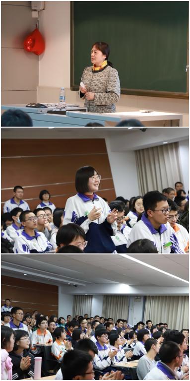 经过一天考试的高三学生们集中在阶梯教室,林琼书记以“钱够花吗?钱放哪里?谁在管钱?”等问题为切入点,从家庭推演至经济主体乃至国家,介绍了职业与专业之间的特点,并结合我校的历史发展、学科建设、专业设置、人才培养特色、就业情况、校友发展等内容,进行了生动、形象的介绍。在互动提问环节,多名学生提出了有关专业选择、大学生活的问题,林琼老师一一进行耐心的解答。