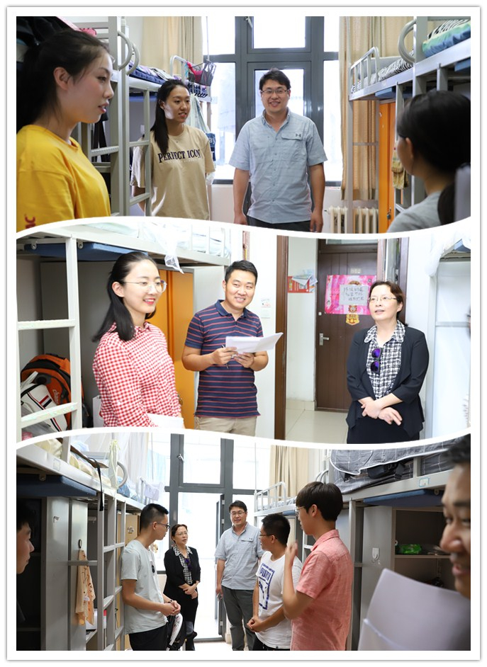 家长会后,学院党总支书记林琼老师、副院长(主持工作)张本家老师、辅导员张振磊老师到新生宿舍走访,在了解新生情况的同时,拉近与新生们的距离,展示出新葡萄官网老师极强的亲和力和对新生们的关心。