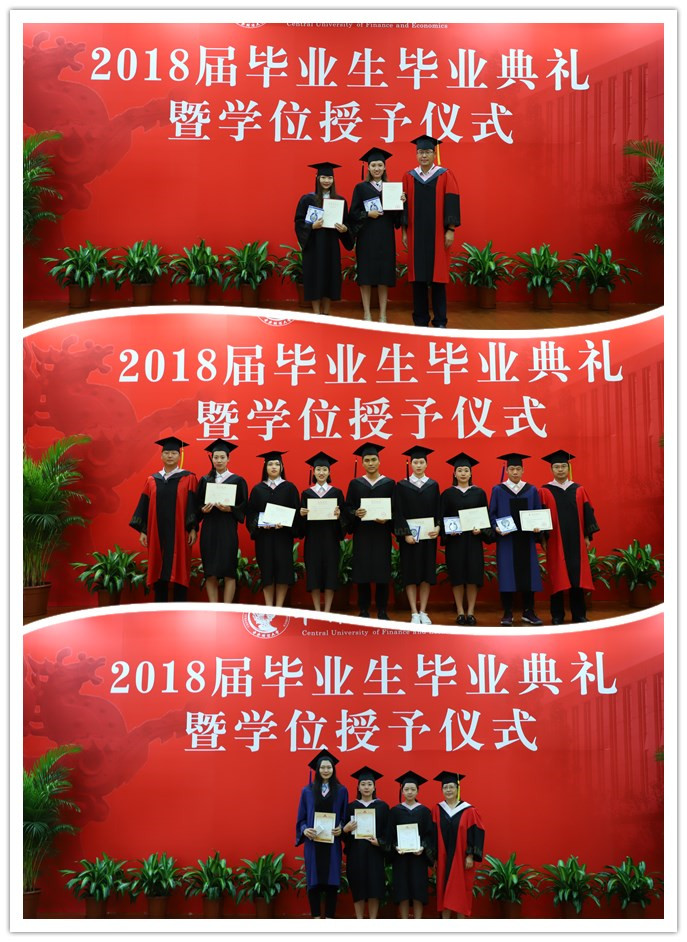 6月26日上午8时,新葡萄官网在学术会堂202报告厅隆重举行2018届毕业生毕业典礼暨学位授予仪式。典礼由学院党总支书记林琼主持,出席典礼的有:学院副院长张本家、王裕雄、王欢,学校合作发展办公室副主任、校友总会副秘书长范维,毕业班班主任张丛杉、李宏权,专业课教师闵捷、杨再惠、李毳、李永红、陈绮文、邱淑敏、马越,中财排球队主教练于雅光、教练焦懿维,公体课教师代表杨海林,本科生毕业班辅导员、院学工办副主任李秋月、研究生毕业班班主任巴蕾,学院团委书记、2017级本科生辅导员张振磊,2016级本科生辅导员胡庆,学院办公室主任邓丹,学院教学科研办公室主任郭佳佳以及教务干事马文博。现场还有热烈欢送2018届毕业生的学弟学妹代表,以及远道而来的毕业生的亲友们。