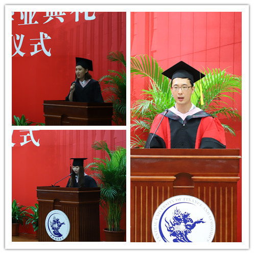 作为2018届毕业生的代表,2014级1班杜文竹和2班陈怡莹代表全体毕业生上台发言,她们表示要继续用行动践行当代青年有责任、敢担当、有勇气、讲奉献的青春风采,兑现为母校和学院争辉添彩的豪情壮志,也希望母校和学院越来越好、老师们身体健康、桃李满天下。