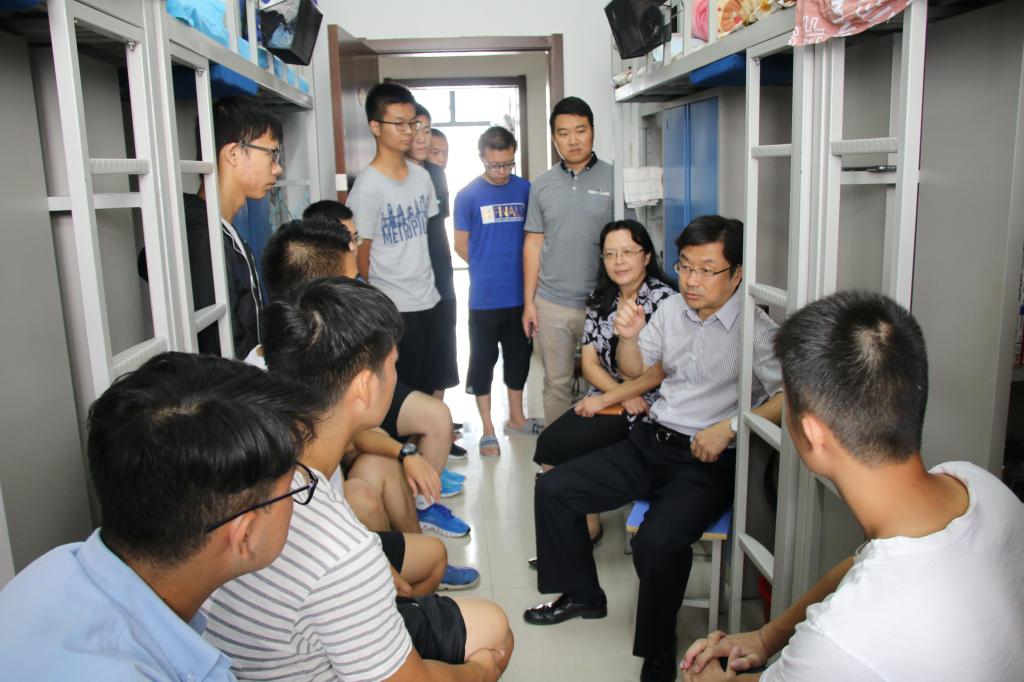 9月15日上午,在开学典礼结束后,校党委副书记梁勇老师专程来到新葡萄官网新生宿舍,看望并了解新葡萄官网新生的学习生活情况,新葡萄官网党委书记林琼老师、新生辅导员张振磊一同参加了走访。