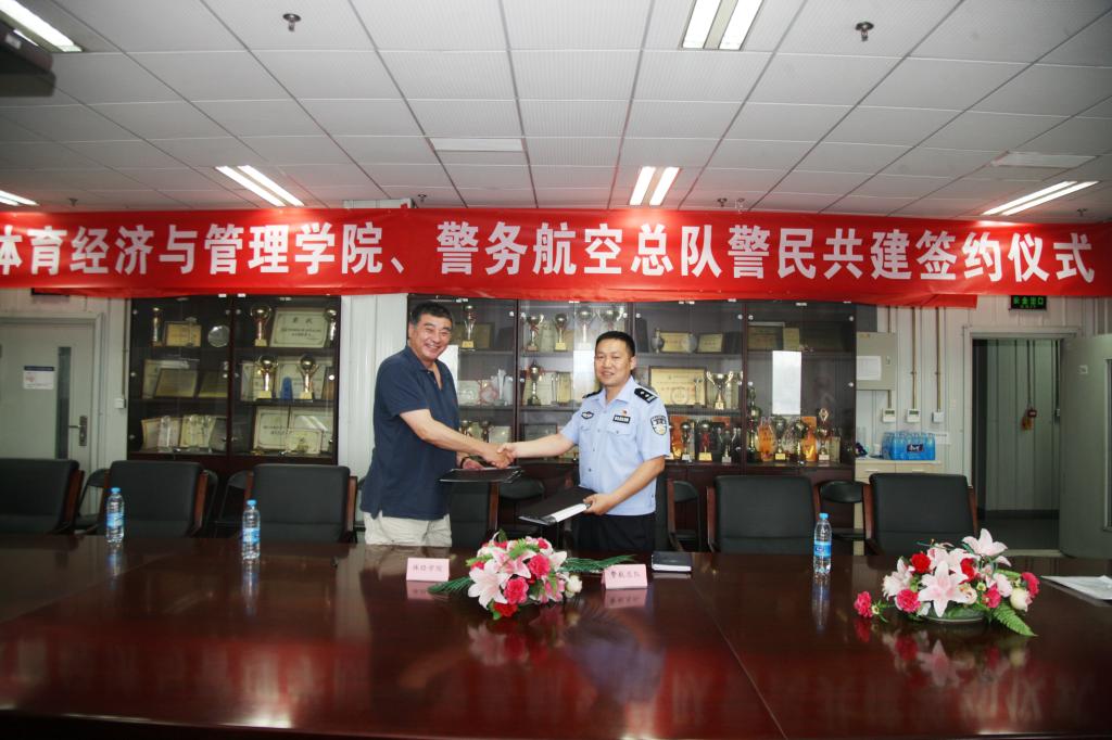 签约仪式上,双方达成了共建意向,签订了警民共建意向书,初步明确了共建内容和要求。学院发挥相关专业优势,为警航总队提供场地设施、全民健身咨询以及体能训练方面的服务与指导。警航总队为学院师生在安全防范教育、防骗防暴教育方面举办培训、讲座或指导活动,双方发扬团结协作精神,做到优势互补。希望在今后的共建过程中,不断提高警民共建的层次与水平,真正做到服务人民、服务驻地、服务师生。