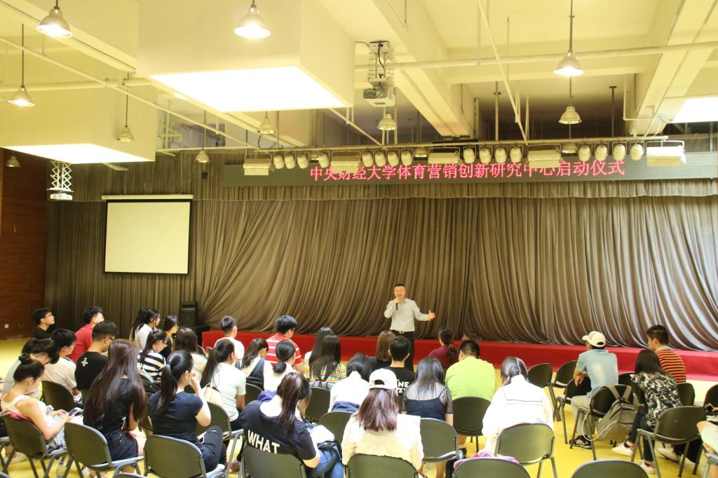 6月11日,中央财经大学体育营销创新研究中心启动仪式于沙河校区大学生活动中心金色大厅顺利举行。新葡萄官网amg党委书记林琼教授、北京宝田国际体育文化传播有限公司(下称“宝田国际”)董事长王建新先生、人力资源总监李剑女士、董事长秘书张曼女士、宝田国际运营推广团队,体经16级辅导员胡庆老师,以及2014级、2015级和2016级的同学们,共同参加了此次启动仪式。