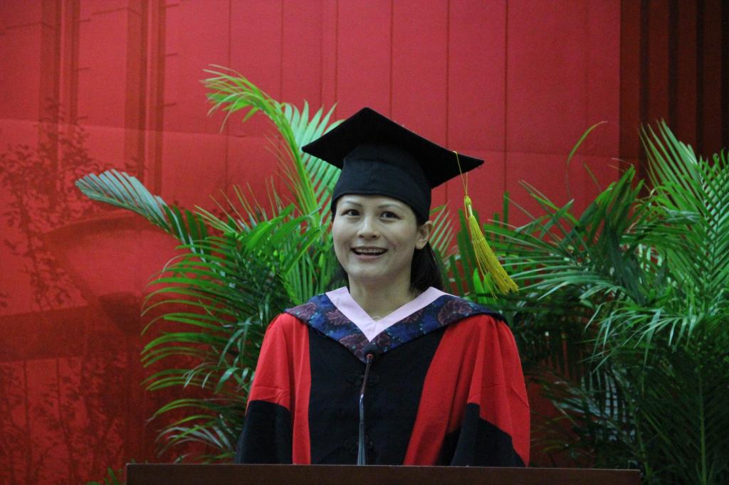 曾经担任2012级班主任两年多时间的邱淑敏老师代表学院全体教师向2016届毕业生表达了寄语。邱老师以4年前入学时2012级同学们为自己设计的精细化目标管理为出发点,回忆了与同学们相处的点点滴滴。同时,邱老师还借美国创业奇迹Elon Musk的事例激励同学们要对自己有信心,要怀抱梦想,有追求更大、更强的勇气,期待大家能够让未来变得更美好,让世界变得更美好。