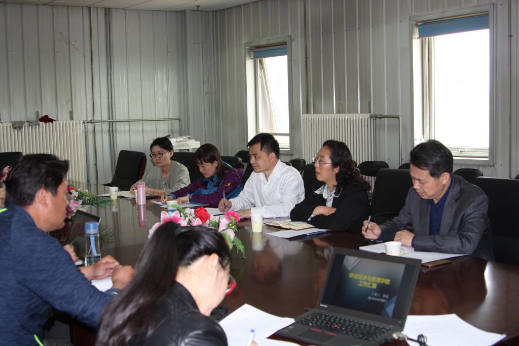 会议中,高涵院长对学院的整体情况进行汇报,指出学院整体发展状况及基本学科脉络。张自如副院长则从学院学科专业发展脉络、学科定位等方面进行介绍,指出学院的教学内容仍然有待改进,教师的实际操作能力、学生实践能力有待进一步加强。张本家副院长就体育课程开课情况、课外体育锻炼打卡系统、“教考分离”模式以及学校群体活动开展情况进行了汇报;吴冶老师则对运动队的训练情况和取得的成绩进行汇报,指出今年高水平女排队虽然仅仅获得了全国大学生排球联赛第三名,但是队员的能力、水平毋庸置疑;希望学校针对现在高水平招生少、保研机会少、高水平教练员工作量大等情况予以重视;王军涛老师则结指出我校体质测试工作已经逐步完善,建议学校考虑是否将体质测试工作纳入到学生综合测评中;刘海滨老师就学校体育拓展设施的情况向校领导进行了说明,指出未来拓展课程开设情况和管理方向。