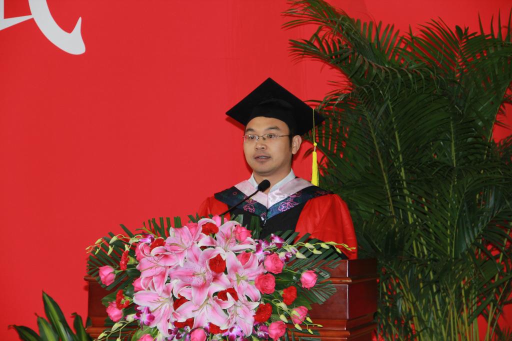 2011级本科生班主任王裕雄老师代表全体教师为2015届毕业生寄语。王老师从最真挚朴实的角度出发,为毕业生们送上了四条珍贵的人生经验:做事先做人;智慧比聪明更重要;勤奋和执着永远是成功的第一要素;理解幸福的真谛。王老师在对学生表达深深的祝愿的同时,也要他们表达了最衷心的感谢,学生的求知欲是激励老师不断前行的一个重要动力,与学生共同渡过的美好时光将会是老师最珍贵的记忆,而我们共同为之奋斗的新葡萄官网amg也将是我们共同的骄傲。