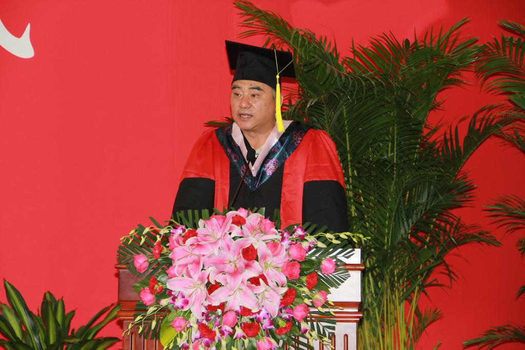 在这依依惜别的时刻,院长高涵教授为2015届毕业生致辞。高涵院长首先代表学院全体教职员工向所有毕业生表示最衷心的祝贺,也向辛勤哺育同学们的父母、悉心教导同学们的老师,以及关心和帮助过同学们的每一位师长致以衷心的感谢和崇高的敬意,大学期间学校、学院都在快速发展,学院历经风雨,在座的同学一定感同身受。他强调青年人要勇于担当党和人民赋予你们的历史重任,要心怀梦想,并坚定不移、矢志不渝去追求。值此毕业之际,高涵院长对毕业生提出了三点希望,希望毕业生在今后的学习生活中能够始终铭记:健康第一、勿忘学习、志存高远。要恪守“忠诚 团结 求实 创新”的校训,将自己的梦想同中国梦联系到一起,用自身的努力与才干去建功立业,逐步完成从一名优秀学子向一名优秀校友的转变。最后祝愿毕业生鹏程万里、前程似锦。