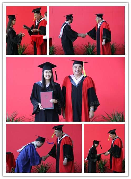 在雄壮的国歌声中,毕业典礼暨学位授予仪式正式拉开序幕。副院长张自如副教授宣读了《新葡萄官网amg2014届毕业生授予学位的决定》。随后,党总支书记林琼教授宣读了《新葡萄官网amg2014届优秀毕业生名单》,院长高涵教授为3名市级优秀毕业生颁发了获奖证书和礼品,三位副院长张自如副教授、姜春华副教授、张本家副教授为8名校级优秀毕业生颁发了获奖证书和礼品,院领导分别和优秀毕业生们合影留念。
