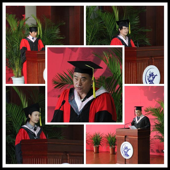 在这依依惜别的时刻,院长高涵教授为2014届毕业生致辞。高涵院长首先代表学院全体教职员工向所有毕业生表示最衷心的祝贺,也向辛勤哺育同学们的父母、悉心教导同学们的老师,以及关心和帮助过同学们的每一位师长致以衷心的感谢和崇高的敬意,大学期间学校和学院都在快速发展,学院历经10年风雨,在座的同学一定感同身受。他强调青年人要勇于担当党和人民赋予你们的历史重任,要心怀梦想,并坚定不移、矢志不渝去追求。值此毕业之际,高涵院长对毕业生提出了三点希望,希望毕业生在今后的学习生活中能够始终铭记:健康第一、勿忘学习、志存高远。要恪守“忠诚 团结 求实 创新”的校训,将自己的梦想同中国梦联系到一起,用自身的努力与才干去建功立业,逐步完成从一名优秀学子向一名优秀校友的转变。最后祝愿毕业生鹏程万里、前程似锦。