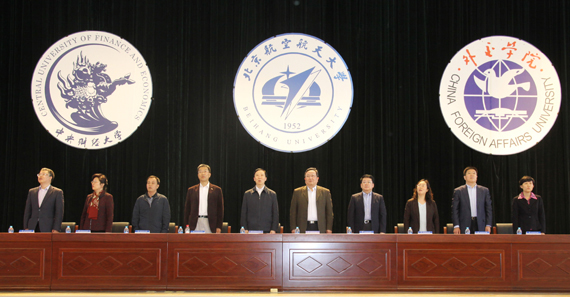 开幕式在雄壮的国歌中开始,沙河高教园区管委会主任王冰、中央财经大学党委书记胡树祥、外交学院党委书记秦亚青等领导分别致辞,他们表示希望通过沙河高教园区文化交流月活动,促进三校之间的交流融合、实现资源优势互补,加强团结,共创美好沙河校区。