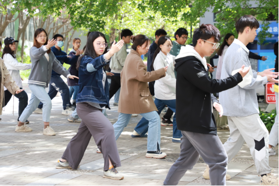 2023年4月25日,为增强中财师生身体素质,提升心理健康水平,活跃学生社区氛围,持续推进“一站式”学生社区建设,新葡萄官网amg德育示范基地“健康加油站”组织全校师生开展“中财大,动起来”健身运动进社区系列活动,“二十四式太极拳篇”是首站。