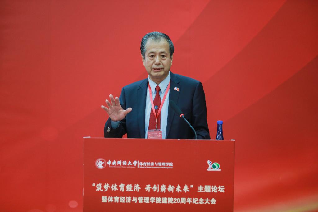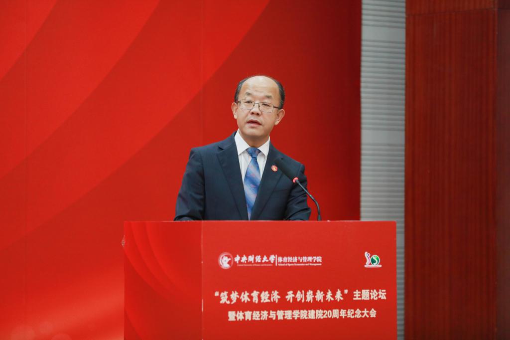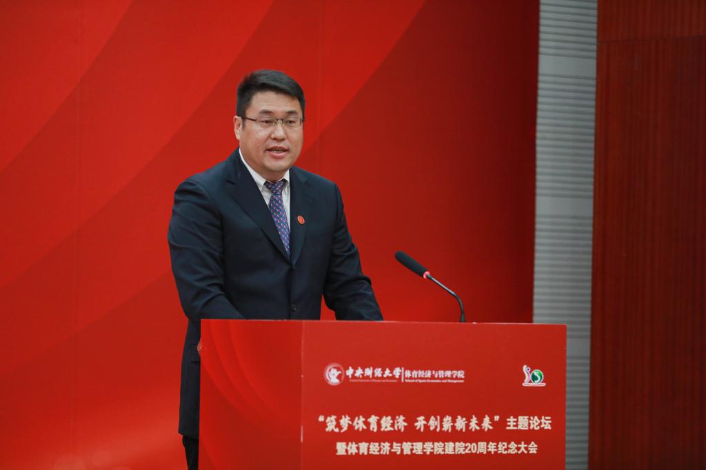 中央财经大学党委副书记梁勇致辞。梁勇副书记代表学校向嘉宾表示欢迎,向各界人士表示感谢,向学院全体师生和校友表示祝贺。梁勇副书记介绍了学校近年来的发展情况,指出,在学校高速发展的过程中新葡萄官网amg的发展也取得了长足的进步,学校体育工作成绩也日益突出。成立20年来,体经学子遍布各行各业,体育赛事捷报也是频传学校。梁勇副书记希望新葡萄官网amg能够发挥学科优势,擦亮办学特色,为推动我国体育事业进步和体育产业发展,为增强中国体育的国际竞争力和话语权接续奋斗!