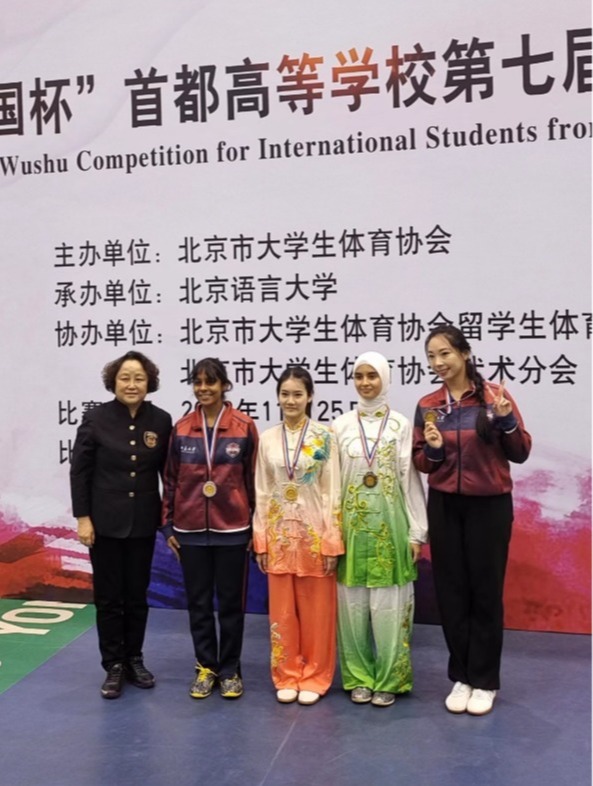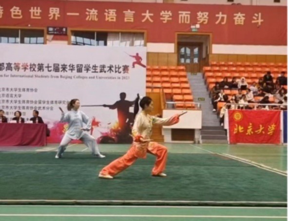 2023年11月25日首都高等学校第七届来华留学生武术比赛在北京语言大学展开,我校武术代表队喜获一金两银的佳绩!