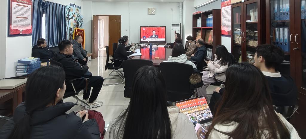 2024年3月4日、5日,中国人民政治协商会议第十四届全国委员会第二次会议和中华人民共和国第十四届全国人民代表大会第二次会议先后在北京隆重开幕。学院党委组织广大师生在学院看台209会议室集体观看了两会的开幕式。