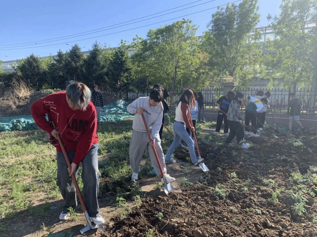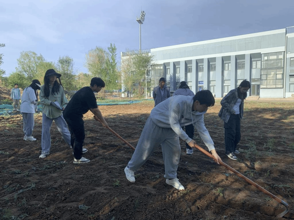 在学院党委副书记陈绮文和劳动实践指导员的带领下,同学们手持锄头、尖锹、钉耙等农具,捡拾杂物、挖地松土、耙地平整、筑垄成畦、施肥撒种、浇水育苗……衣服皱了、鞋袜脏了、手起泡了,汗珠挂在发梢,笑容漾在脸上。热火朝天的劳动身影在暮春暖阳映照下,成了学院最美的风景。