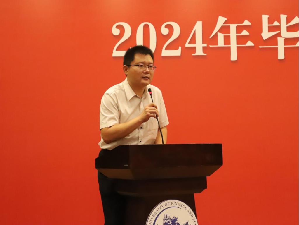 体经校友会副秘书长刘阳代表校友会接收2024届新校友。刘阳校友是体经03级本科生、体经09级硕士生,现任招商银行永丰中心支行副行长。刘阳校友在发言中表达了对2024届毕业生的殷切期望,分享了职场工作的经验,并送去了祝福。