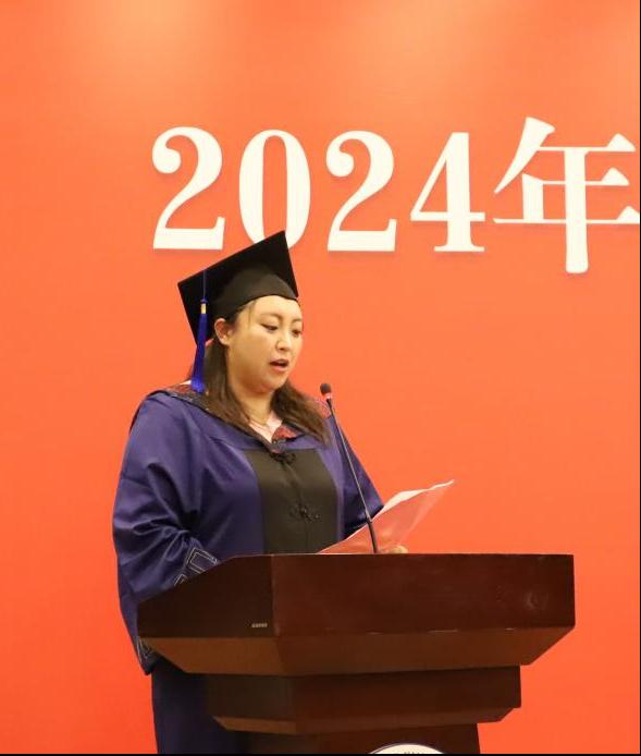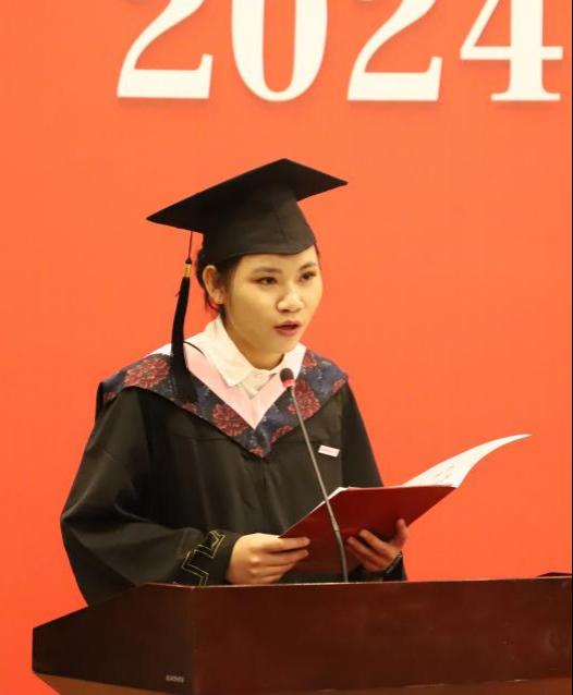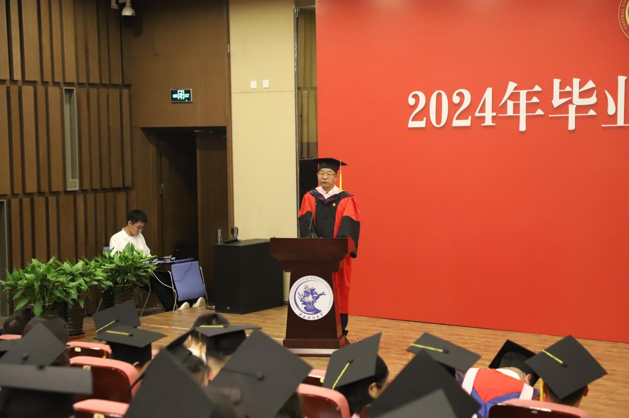 随后,张丛杉副院长宣读了《关于2024届本科毕业授予学士学位的决定》和《关于2024届研究生毕业及授予硕士学位的决定》;宋立岩书记宣读了《关于表彰2024届优秀毕业生的通知》。副院长王欢、张丛杉为校级优秀毕业生颁奖,院长张本家为市级优秀毕业生颁奖。