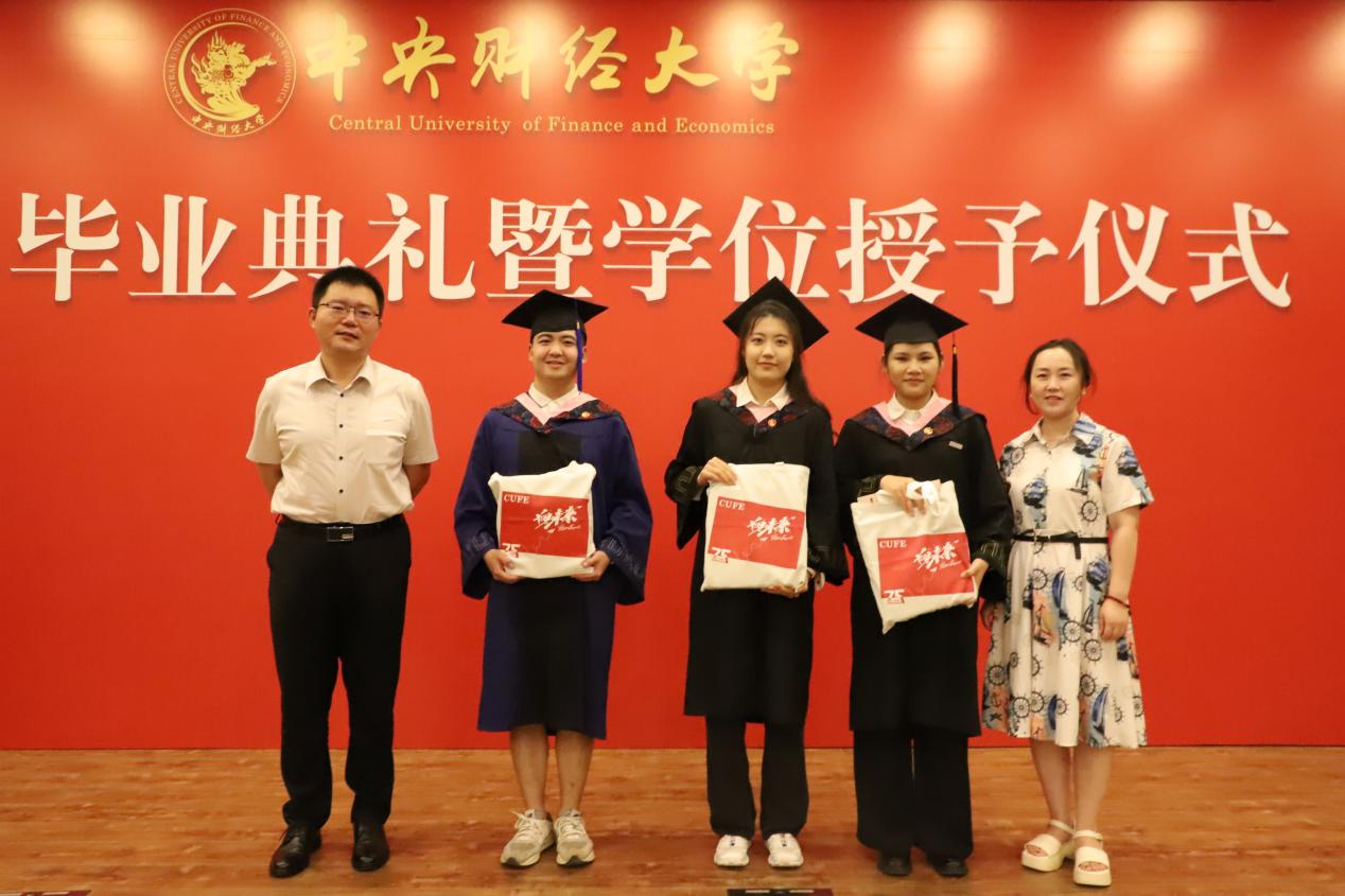 之后,典礼还进行了新校友接收仪式。学院校友分会副秘书长刘阳、郭佳佳为校友代表佩戴了校友徽章,并发放校友大礼包。毕业生从此多了一个身份——中财大校友!
