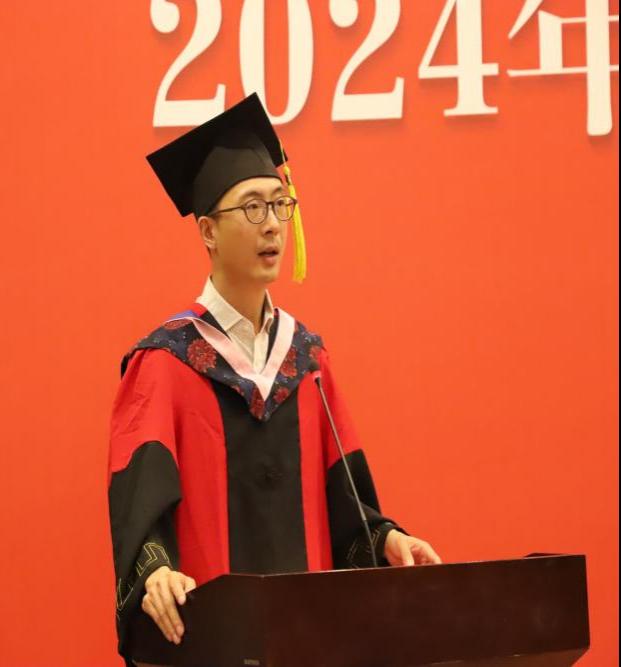 院长张本家致辞。他在致辞中首先祝贺2024届毕业生顺利完成学业,并对毕业生代表返校参加毕业典礼表示热烈欢迎。他讲到,回首过去,同学们徜徉知识的海洋,进行了学术科研、志愿服务、社会实践、体育比赛等诸多实践,亲历了祖国的发展和学院事业的发展,并希望大家能够带着大学的美好回忆和所学到的宝贵知识,勇敢追求自己的梦想。无论走到哪里,不管身在何方,学院永远是你们的坚强后盾和精神家园。