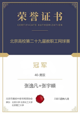 新葡萄官网教师张逸凡参加了男双四十岁以下组别比赛,经过激烈角逐,连胜六场,并在决赛中力克北京大学选手荣获冠军。