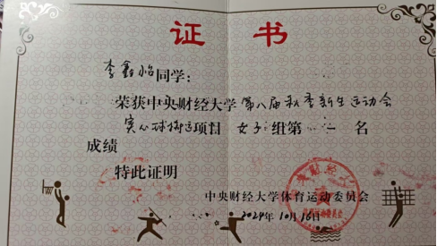 体经学子们用汗水浇灌的树木结出了累累硕果,他们终不负所托。体经本科生李鑫怡同学以9.610的成绩,在实心球掷远中取得女子组第一名的好成绩;体经硕士生张炜杰同学在男子1500米比赛中创造了中财新生男子长跑新纪录,以4:40.170的成绩位居第二。体经健儿在其他个人和团体项目中的表现也都可圈可点。