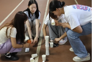 “建立最高塔”小组PK赛拉开帷幕。每组手持纸杯,成员们分工协作、轮流摆放,有人负责搭建“地基”,有人专注调整纸杯角度,生怕“高塔”中途倒塌。现场加油声、讨论声此起彼伏,最终,一组以“10层纸杯塔”的成绩夺冠,用协作诠释了“团结就是力量”。