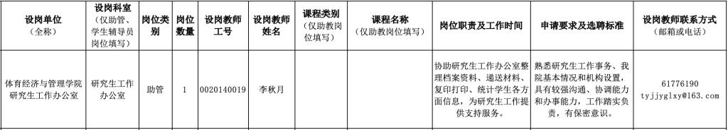 请有意向申报岗位的研究生于2023年2月24日17:00前根据公布的联系方式自行联系设岗教师进行申报。