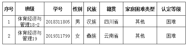 根据《关于开展2019-2020学年第二学期预科生、本科生家庭经济困难认定动态调整工作的通知》的相关要求,新葡萄官网开展 2019-2020学年第二学期家庭经济困难学生认定动态调整工作,由学生本人提出申请,经班级认定评议小组评议认定,报学院认定工作组审核,确定家庭经济困难学生评议结果,现将评议结果公示如下: