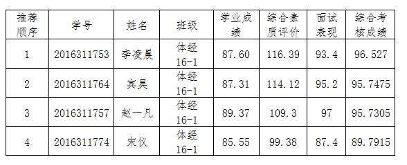 根据教务处《关于做好我校2020年推荐优秀应届本科毕业生免试攻读研究生工作的通知》(教字【2019】96号),新葡萄官网根据《中央财经大学推荐优秀应届本科毕业生免试攻读研究生工作办法》(校发【2017】124号)、《新葡萄官网amg推荐优秀应届本科毕业生免试攻读研究生工作办法》(院发【2018】5号)要求,按照办法程序,根据学校分配的推荐名额,经过本人申请、资格审查、面试等环节,确定了常规拟推免推荐顺序名单,推荐顺序如下,现进行公示: