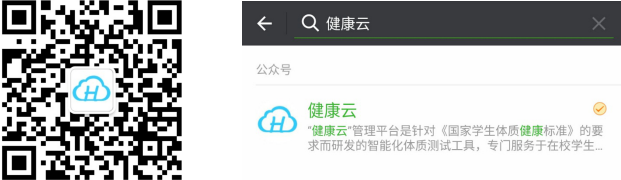 1、打开手机微信,扫描如下二维码或者搜索公众号“健康云”,关注健康云公众账号。