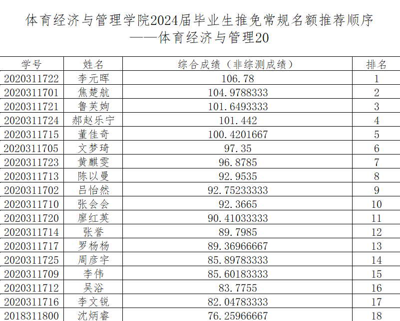 附件2:新葡萄官网amg2024届毕业生推免常规名额推荐顺序