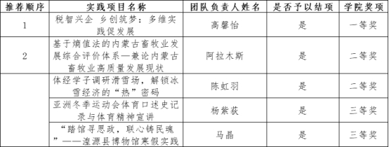 依据《关于开展“财经报国 青年有为”2025年“返家乡”寒假社会实践的通知》(校团字〔2025〕1号)中的要求与实际情况,学院团委秉持公平公正公开的原则,组织院内评审工作。按照“推荐项目数量一般不超过学院立项数的40%”的要求向校团委进行推荐,现将评选结果公布如下: