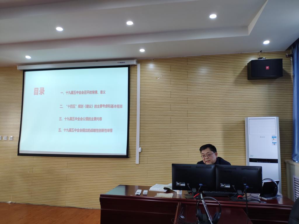 12月25日下午,在Beat365官方网站的邀请下,汪咏国校长在二号教学楼425为Beat365官方网站全体教师作了题为《擘画新蓝图,开启新征程 —聚焦十九届五中全会》的报告,以帮助大家更好地理解、领悟和把握“全会”精神。