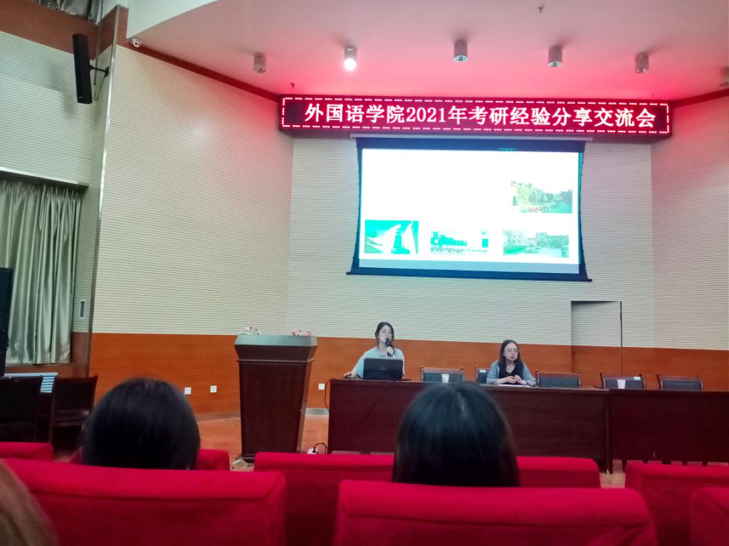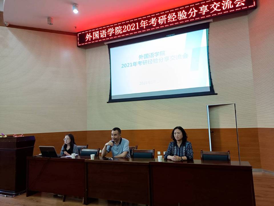 又是一年收获季,在迎来中国共产党建党100周年之际,外院学子在考研战场也是捷报频传。为给正处于抉择期的低年级同学及时传授“上岸”经验,分享考研征途的艰辛不易,感受“先苦后甜”的踏实美好,5月13日晚,外语学院特邀2021届考研成功的9名优秀学生代表,于3号报告厅作考研经验分享交流报告,为备战考研的学弟学妹们讲解备考中的经验教训,并现场进行耐心答疑。外语学院副院长杨江锋、党总支副书记袁荣出席,辅导员马浦珍主持,2018级和2019级部分同学共150余人现场聆听。
