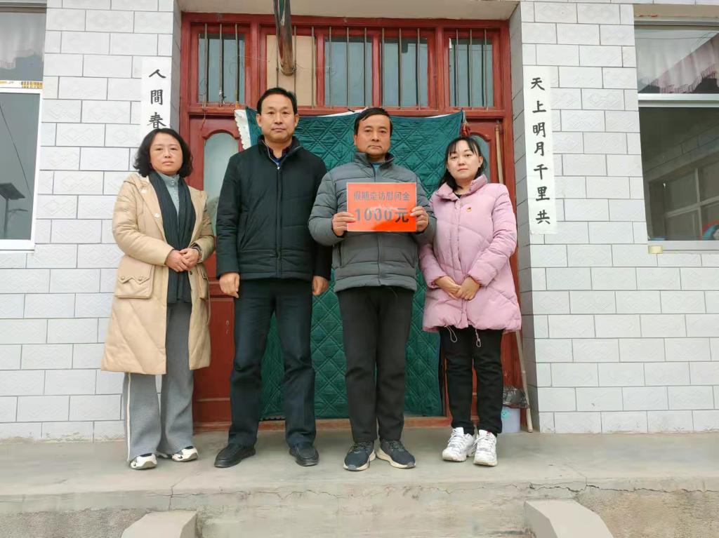 1月7日,Beat365官方网站党总支书记司成林、分管学生工作副书记袁荣、团委书记董晓玫一行3人,赴天水市秦州区和麦积区周边走访慰问家庭经济困难学生,看望学生家人,了解生活情况,为3户家庭送去大米、食用油和每户1000元慰问金,把学校和学院的关心和祝福送到学生家中。