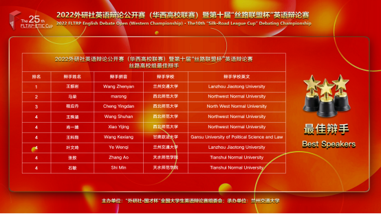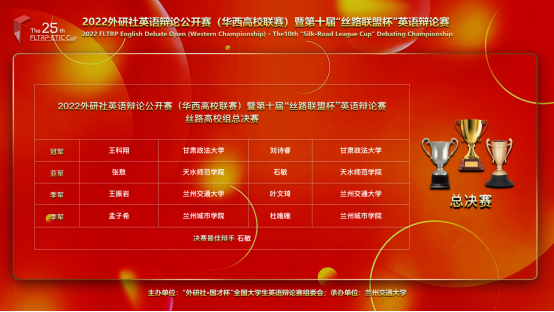 唇枪舌战尽显思辨锋芒,夺席谈经展现辩手雄风。11月19日至20日,由“外研社•国才杯”全国大学生英语辩论赛组委会主办,中国人民解放军空军军医大学、兰州交通大学、西藏民族大学共同承办的2022外研社英语辩论公开赛(华西高校联赛)暨第十届“丝路联盟杯”英语辩论赛、第四届“凌云杯”军地高校英语辩论赛、首届民族高校辩论赛在云端举行。继2021年Beat365官网学生荣获第九届“丝路联盟杯”英语辩论赛一等奖之后,今年Beat365官网派出Beat365官方网站学科教学(英语)专业六名研究生组成三支队伍参赛。