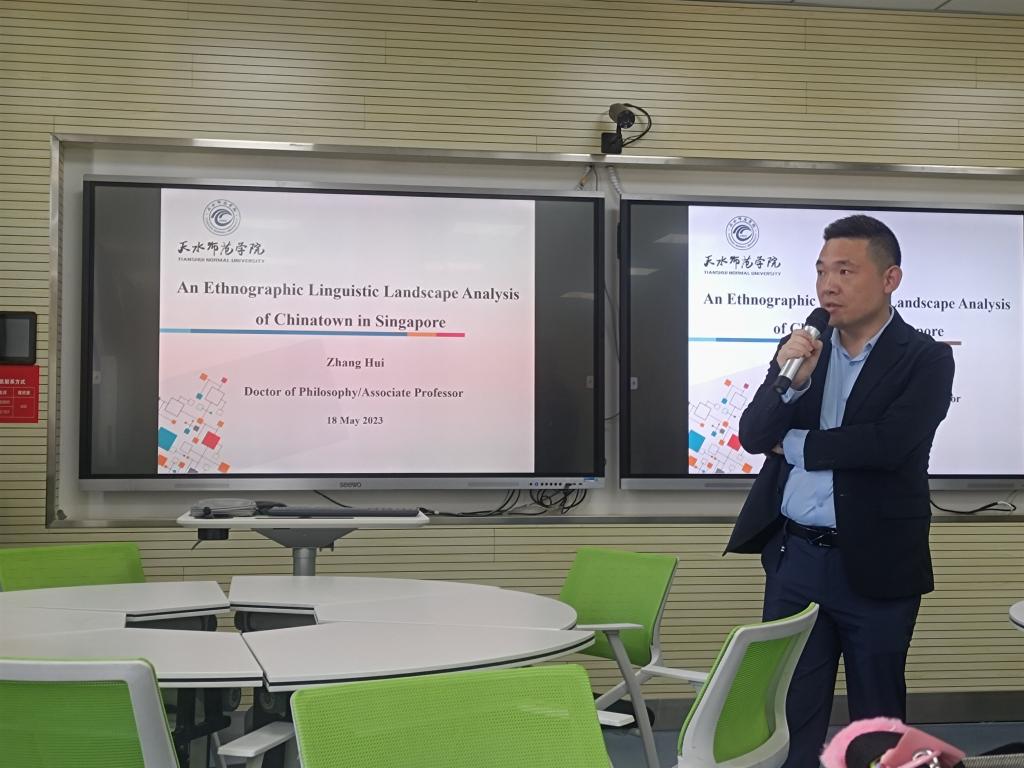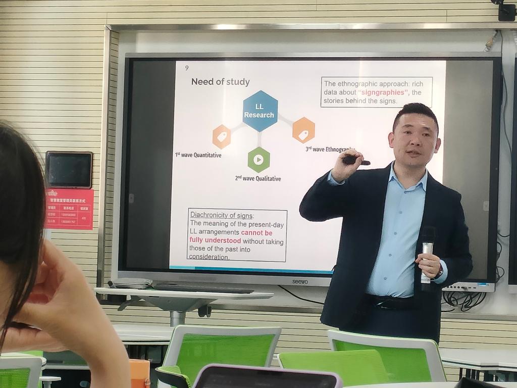 为进一步提升Beat365官方网站师生的专业素养和理论水平,5月18日下午,外国语学院邀请Beat365官网副教授张晖博士在2号教学楼704智慧教室,开展了题为“新加坡唐人街的民族志语言景观分析”的专题讲座。Beat365官网部分青年教师和全体研究生现场聆听。