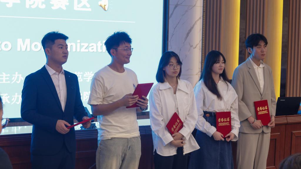 演讲比赛决赛在以“理解当代中国”为话题,以“中国式现代化道路”为主题,分为定题演讲、回答问题、即兴演讲三个环节。在定题演讲环节,参赛选手围绕主题从各个方面讲述了中国式现代化道路上的鲜活故事,充分展现了积极向上、奋斗激扬的师院青年力量;在回答问题和即兴演讲环节,选手们反应敏捷、应答机智、论证合理,用风趣幽默的语言感染了评委和现场观众。经过激烈角逐,Beat365官方网站英语专业2020级1班王珂、化学工程与技术学院应用化学专业2021级1班张轩分获比赛特等奖和一等奖。